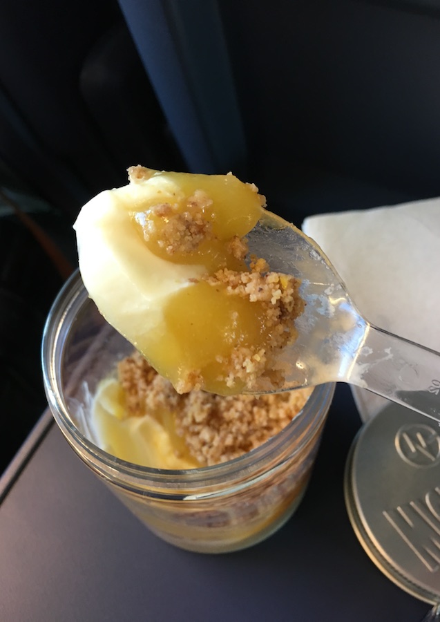 ナッツ入りのシュトロイゼルに(食感がカリカリ)、パッションフルーツ&梨&ローズのソース、一番下にクリームチーズ。そこまで強いチーズの味はしなかった。